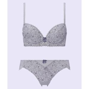 ニッセンとトリンプ共同企画 脇高刺しゅう コスモス レースブラジャーショーツセット ABCD