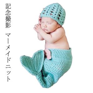送料無料 寝相アート マーメイド ニューボーンフォト ベビー ニット 衣裳 コスチューム 人魚 衣裳 ペーパーフラワー 2点セット 帽子 写真撮影 記
