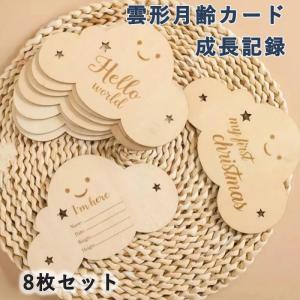 雲形 ウッド 8枚セット 月齢カード 写真道具 ニューボーンフォト 月齢フォト ベビーマンスリーカッド 記念日フォト 出産祝い 赤ちゃん 新生児 成長記録 撮影道