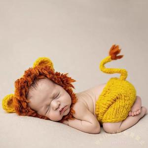 ニューボーンフォト ライオン コスチューム オレンジ 手編みニット Welina 寝相アート 月齢フォト 新生児 写真撮影 記念写真 かわいい ベビー衣装