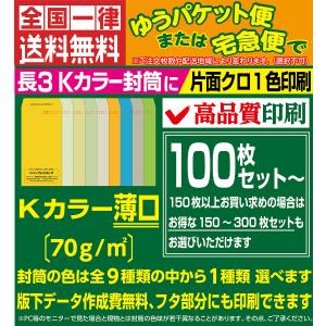封筒印刷 長3カラー封筒 薄口 黒1色 版下作成費無料 100枚セット〜