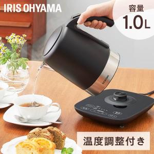 電気ケトル おしゃれ 温度 温度設定 温度調節 温度調整 黒 電気 ケトル 電気ポット 湯沸かし 1L アイリスオーヤマ IKE-D1000T-B