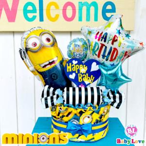 ミニオンズ おむつケーキ ミニオン 出産祝い 男の子 お祝いバルーン ベビーシャワー