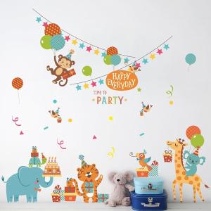 ウォールステッカー 子供部屋 誕生日 動物 お誕生会 シール かわいい キリン きりん ぞう 猿 アニマル ステッカー 風船 壁紙 インテリア ケーキ 旗 diy vr0778