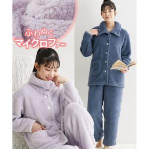 パジャマ・ルームウェア パジャマ 上下セット 大きいサイズ レディース ふわぬくマイクロファー首あったか 前
