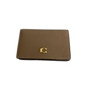 COACH◆エッセンシャルビジネスカードケース/カードケース/レザー/ベージュ/無地/レディース