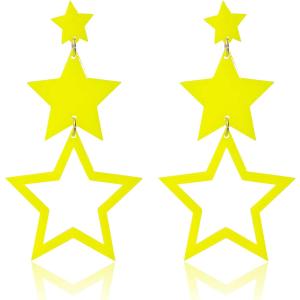 【並行輸入品】Pingyongchang カラフル アクリル ビッグスター ダングル ドロップ イヤリング ロング タッセル ネオン 幾何学 80年代