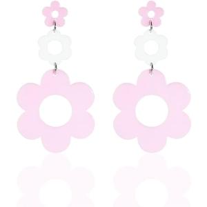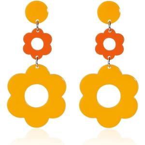 【並行輸入品】60 70年代ビッグアクリルダブルデイジーフラワー花びらドロップダングルイヤリング スタッド 樹脂フローラル レディース ガールズ カラ