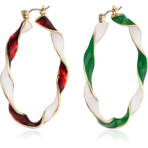 【並行輸入品】RareLove クリスマスイヤリング ツイストフープピアス レッドグリーン ホリデーイヤリング レディース ビッグサイズ ホリデージュ