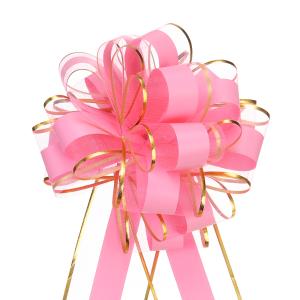 uxcell 金色エッジ付きの6"大型ビッグプルボウ5個セット オーガ ンザカーギフトラッピングボウリボン ピンク