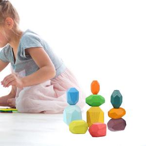 木製バランススタッキングストーンズ モンテッソーリパズルおもちゃ 3歳まで スタイルB