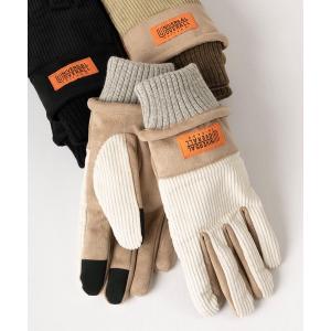 手袋 「79」「UNIVERSAL OVERALL/ユニバーサルオーバーオール」ブランドロゴ コーデュロイ切替えグローブ/ スマートフォン対応/手袋/