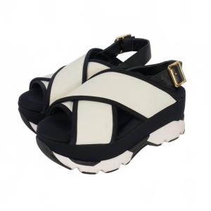 マルニ MARNI テックファブリック クリスクロス サンダル プラットフォーム 厚底 36 白 黒 ホワイト ブラック レディース