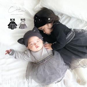 coto cotte スモッキング刺繍チュール&ネコ耳ヘアバンドセット(ロンパース 女の子 70 80 秋冬 長袖 ベビー服 セット 双子 赤ちゃん ワンピース 可愛い 猫)
