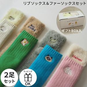 靴下 ギフト プレゼント 箱入り ギフトボックス ルームソックス ワンポイント 刺繍 裏起毛 リブソックス ファーソックス もこもこ もふもふ