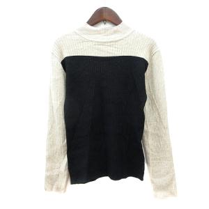 ファボリ FAVORI ニット カットソー ハイネック 長袖 リブ バイカラー 38 M ベージュ 黒 ブラック /MN レディース