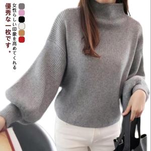 バルーン袖 ニット セーター 長袖 バルーンスリーブ ニット トップス ハイネック レディース ニットセーター 大きいサイズ リブ ぽわん袖 韓国ファ