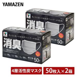 フェイスマスク プリーツマスク 不織布 4層 活性炭マスク 個包装100枚(50枚入×2箱) YKM4-50 マスク 不織布マスク 使い捨てマスク 消臭 フリーサイズ 山善