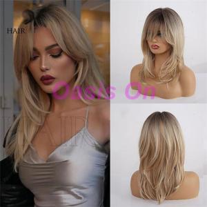 フルウィッグ レディースウィッグ 耐熱ウィッグ 金髪 グラデーション コスプレ ミディアム
