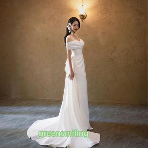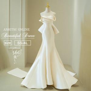ウェディングドレス 二次会 結婚式 ブライダル マーメイド オフショルダー 前撮り 挙式 花嫁 記念撮影 ウエディングドレス ガーデンウエディング サテン