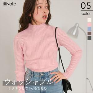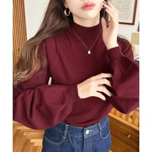 リブニット レディース トップス ボトルネック 長袖 パフスリーブ シンプル 定番 着回し シルエット 無地 「メール便不可」「20」