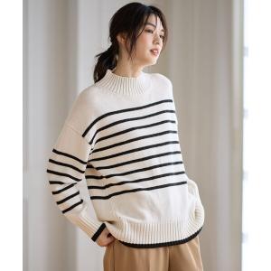 ニット セーター 片畦ボーダーボトルネックニット レディース