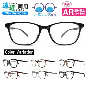 ■小玉レンズ使用■ 遠近両用眼鏡 Lune-0015 ウェリントン 小窓 二重焦点 ブルーライトカット ARコート(メガネ拭き+布ケース付) 老眼鏡