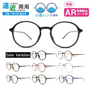 ■小玉レンズ使用■ 遠近両用眼鏡 Lune-0016 ラウンド 小窓 二重焦点 ブルーライトカット ARコート(メガネ拭き+布ケース付) 老眼鏡