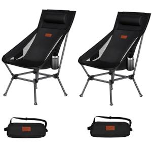 DesertFox アウトドアチェア 2WAY キャンプ椅子 ローチェア 軽量 枕付き ハイバック 単品/セット独自開発のカップホルダー 耐荷重