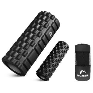 MOJEER フォームローラー 筋膜リリース 大小2個セット 筋膜ローラー ストレッチローラー グリッドフォームローラー YJZ033 (黒L)
