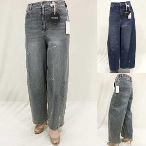 秋冬物【アヤン/年間物/875815】綿ストレッチデニムハイウエスト3Dカーブ脇線+後脇裾ダーツカーヴィーコクーン+ペイント加工/spp/7i71b751xx