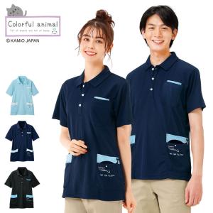 看護 介護 病院 保育士 ケア ヘルパー 男女兼用 イルカ クジラ ペンギン ユニフォーム かわいい 吸汗速乾 カラフルアニマル海のポロシャツ