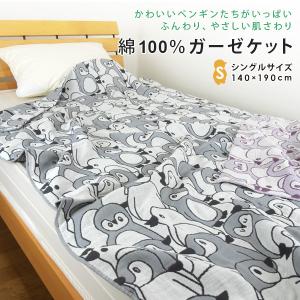 ガーゼケット ペンギン柄 シングルサイズ 140×190cm 綿100% 3重ガーゼ 夏掛け 肌掛け 涼感 吸水 通気性 洗える タオルケット