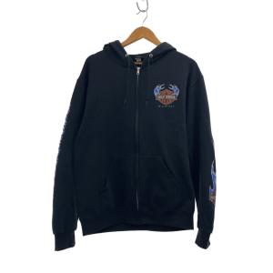 HARLEY DAVIDSON◆ブルーフレイム/ホノルル限定/ジップパーカー/M/コットン/BLK/無地