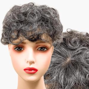 部分ウィッグ かつら ヘアピース ポイントウィッグ 白髪 グレイヘアー 女性 レディース(白5黒5人毛mix, グレイヘアーパーマ)