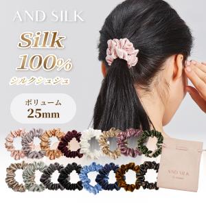 シルク シュシュ 6a ボリューム25mm シルク100% 6A 25匁 大人っぽい 小さめ シンプル ボリューム ヘアゴム ANDSILK 黒 髪にやさしい ヘアアクセサリー