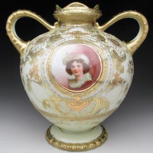 オールドノリタケ 金盛りポートレート貴婦人 花瓶