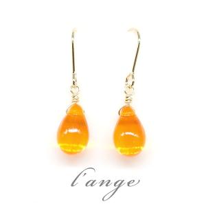 ピアス ミカンの雫 オレンジ 16KGP ゴール 樹脂ピアス チェコガラス レディース 金属アレルギー対応 フック 30代 40代 50代