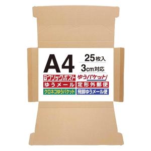 クリックポスト 箱 ネコポス 最大 3cm 対応 25枚セット (309×226×29mm) サイズ A4 ダンボール箱 メルカリ ラクマ ヤフオク 軽量 郵便 郵送 定形外 メール便