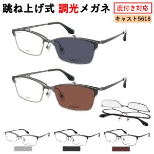 度付き 度なし 調光サングラス 跳ね上げ サーモントブロー メタルフレーム CAST 5618 調光メガネ 調光レンズ メンズ 度あり 近視 近眼 乱視 だて 伊達 UVカット