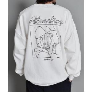 トレーナー スウェット 8oz裏起毛スモーキングガール線画イラストスウェット メンズ