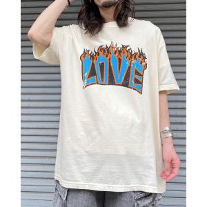 tシャツ 「MODISH GAZE」LOVEロゴプリント ピグメント加工 ビッグシルエットTシャツ メンズ レディース