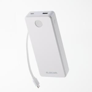 エレコム モバイルバッテリー 残量が見える ケーブル一体型 モバイルバッテリー 20000mAh 67W Type-C ケーブル一体型 ホワイト ELECOM DE-C77-20000WH