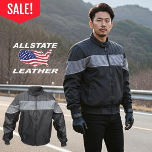 【セール!アウトレット】ALLSTATE LEATHER AL2093 メンズ グレイ/ブラック リフレクティブ ライディングジャケット Mサイズ