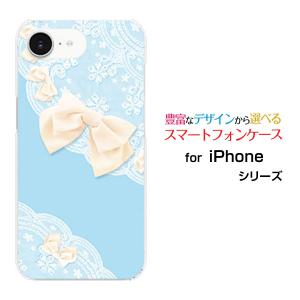 スマホケース iPhone 17e ハードケース/TPUソフトケース レース&リボン (ブルー) 可愛い(かわいい) パステル 水色(みずいろ)