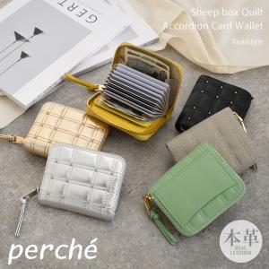ペルケ perche 財布 レディース 二つ折り コンパクト カードウォレット お札を折らない 小銭入れ ジャバラ 本革 キルティング シープボックス スリップ式
