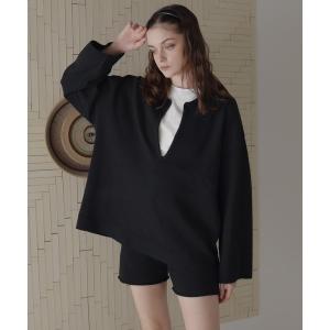 ニット セーター 「セットアップアイテム」ホック付きポロニット&ショートニットパンツ レディース