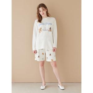 パジャマ ルームウェア 「UNISEX」プレイフルDOG柄ハーフパンツ レディース