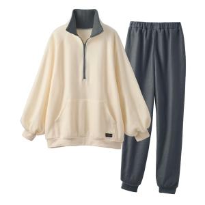 パジャマ ルームウェア 「ワンマイルウェア」かるぽかハーフジップフリースパジャマ レディース