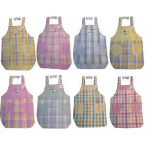 エプロン キッチン エプロン アップリケ刺繍付き チェック柄 H型キッチン 兎イエロー 兎ピンク 猫イエロー 猫ピンク 熊ピンク 16693